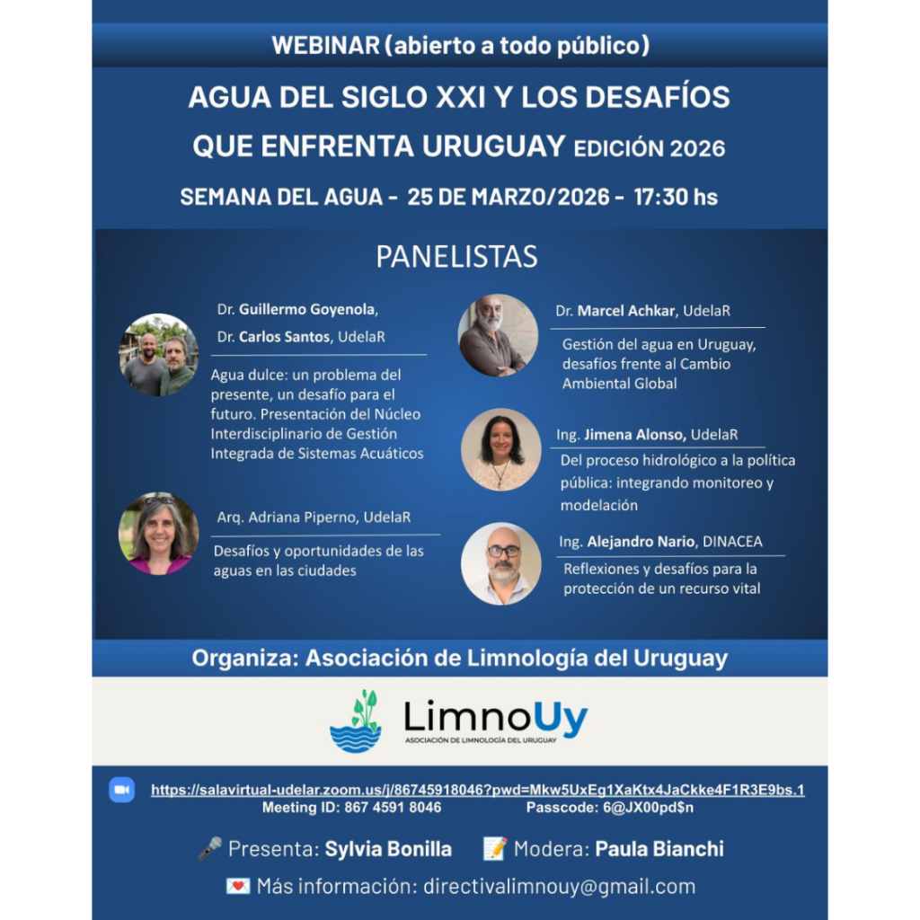 En el marco de la Semana del Agua, la Asociación de Limnología del Uruguay invita a participar del panel de intercambio centrado en los desafíos de la gestión del agua en el contexto actual, con la participación de referentes académicos e institucionales.